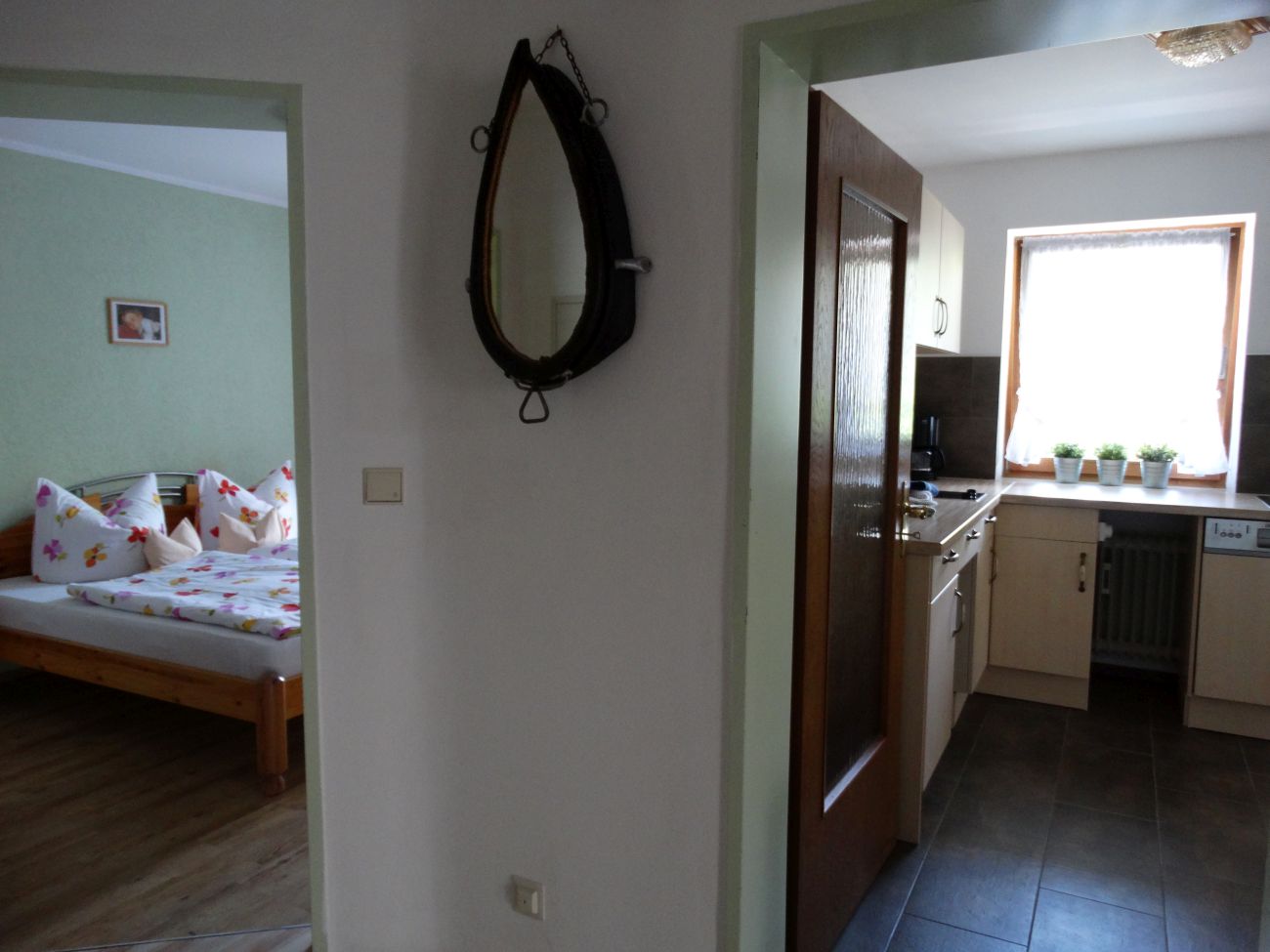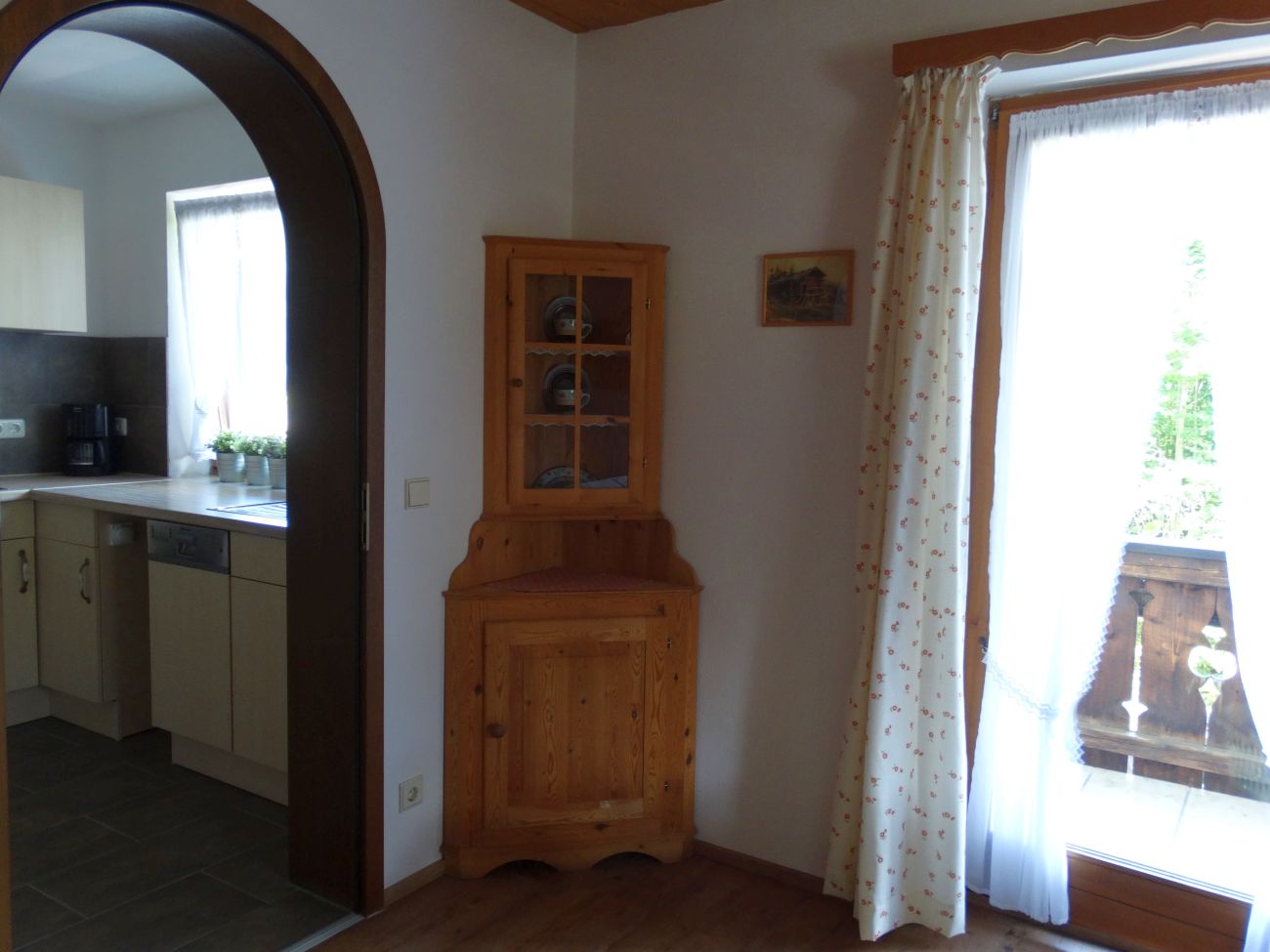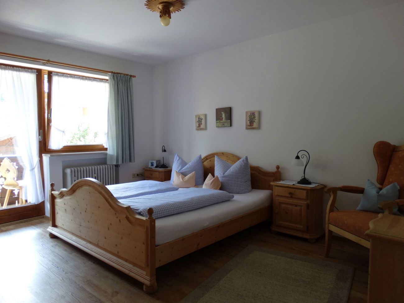 Die Ferienwohnung liegt im ersten Stock mit Süd- und Ostbalkon und direktem Alpenpanoramablick. Zwei getrennte Schlafzimmer, Wohn-Esszimmer, Küche extra, Dusche, WC extra. Die Ferienwohnung ist im alpenländischem Stil eingerichtet. Bettwäsche und Handtücher sind enthalten.